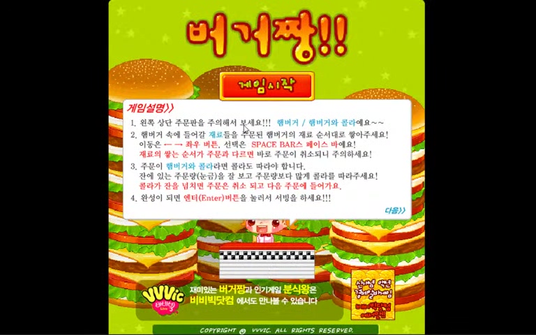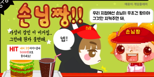 이동 ←,→ 음식 놓기 : 스페이스바 손님에게 주기 : 엔터